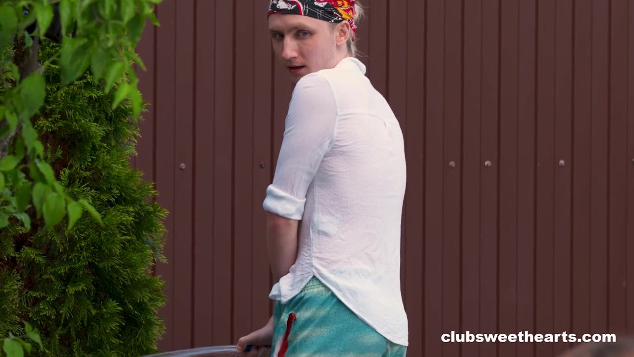 Мокрая блондинка с трясущимися сиськами Руби Ли трахается у бассейна