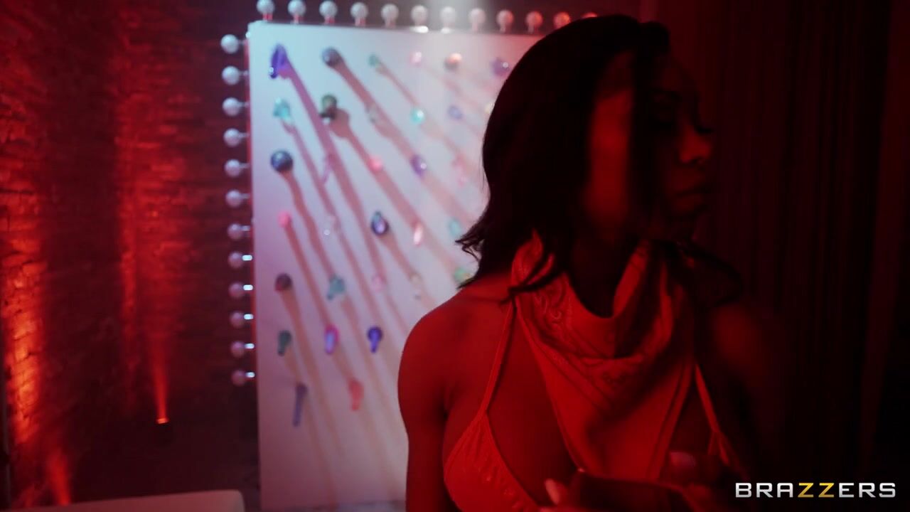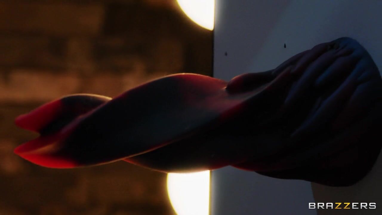 Мужик в маске на Хэллоуин трахает Надю Джей через стену фаллоимитаторов