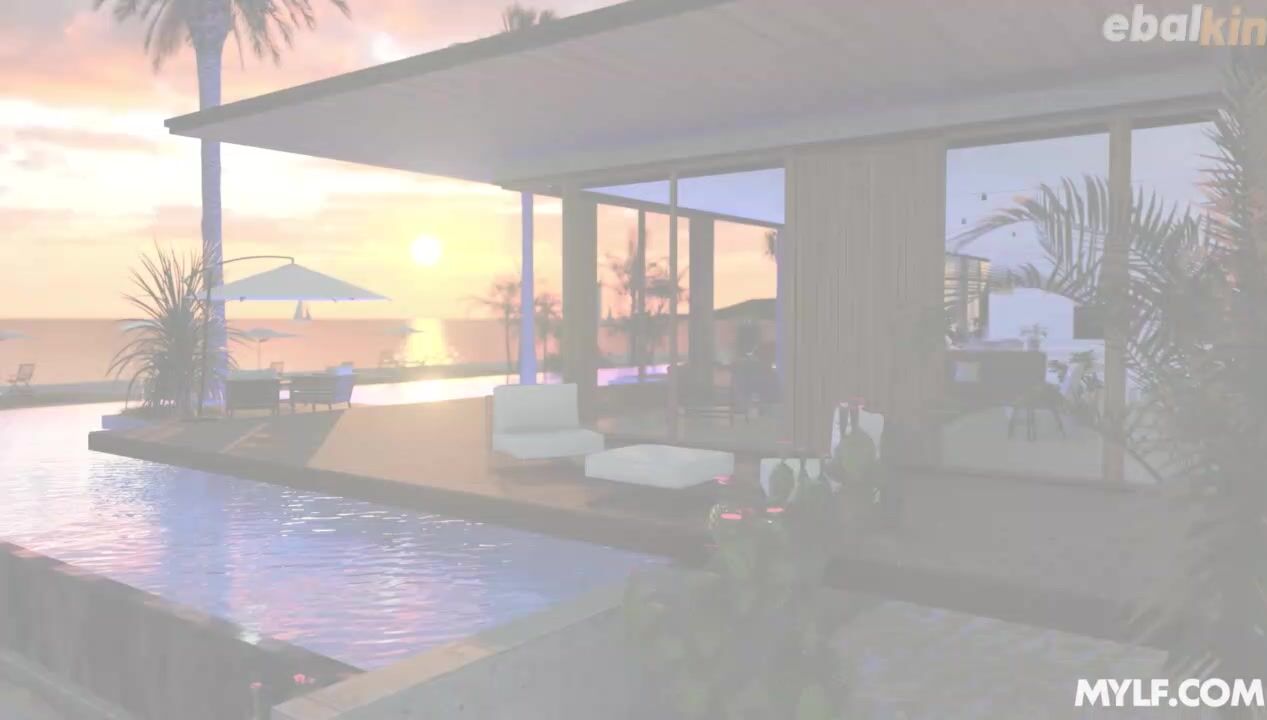 Мокрая блондинка с трясущимися сиськами Руби Ли трахается у бассейна