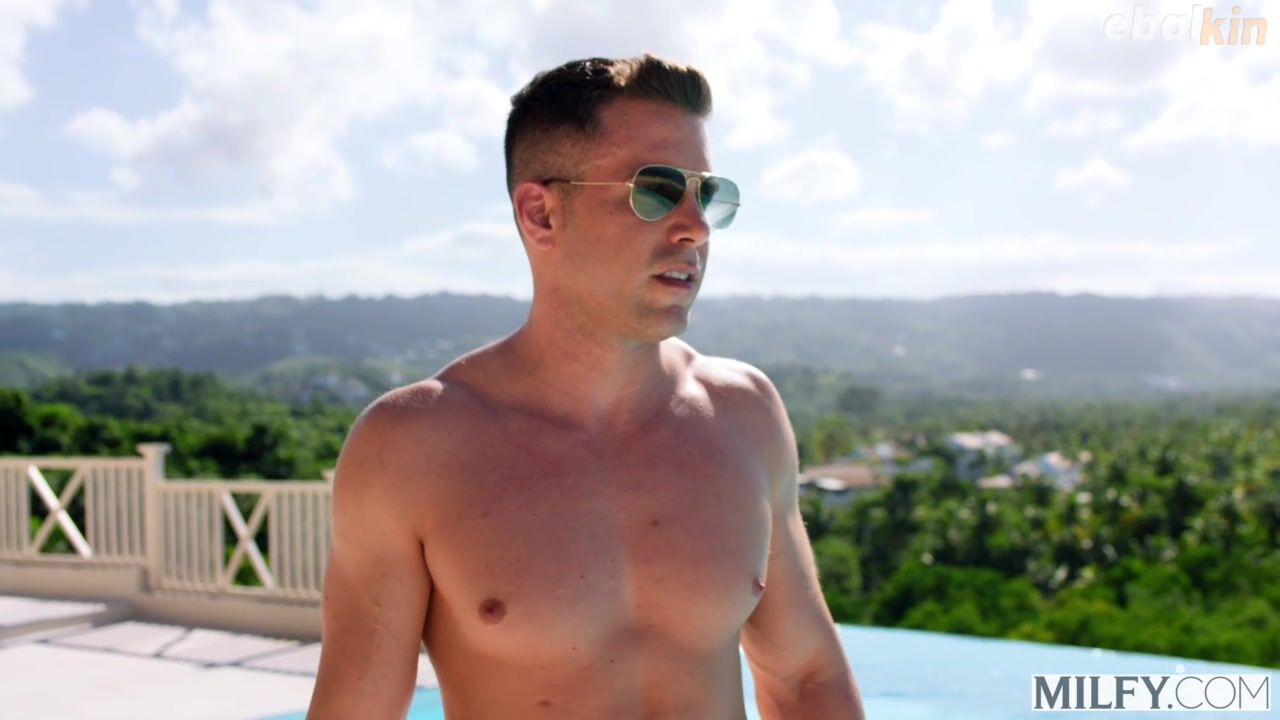 Мокрая блондинка с трясущимися сиськами Руби Ли трахается у бассейна