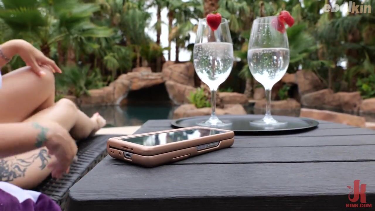 Мокрая блондинка с трясущимися сиськами Руби Ли трахается у бассейна