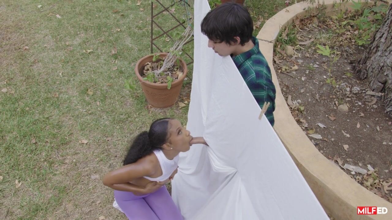 Замужняя черная спортсменка Оливия Джей трахается во дворе с соседом