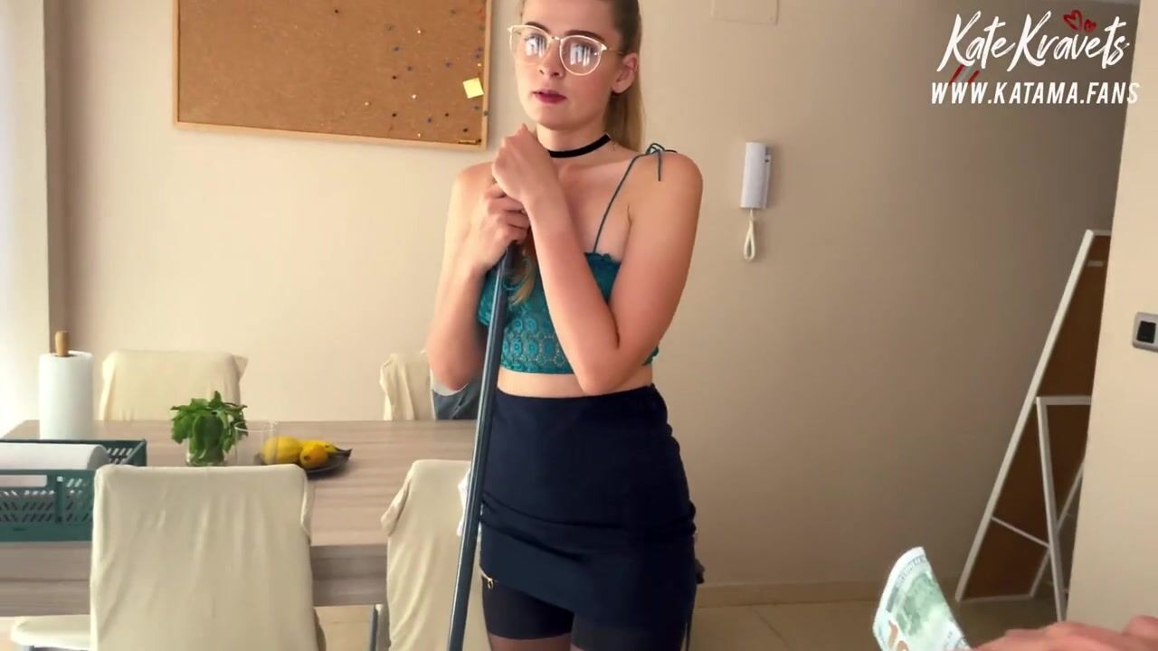 Русская горничная за деньги полирует до блеска твердый член работодателя