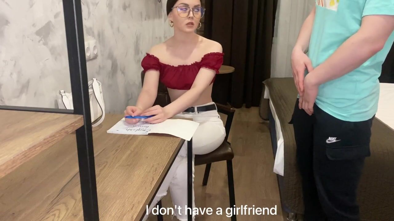 Сексуальная русская репетиторша помогает своему ученику бросить дрочить хуй